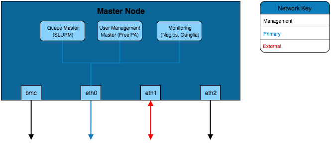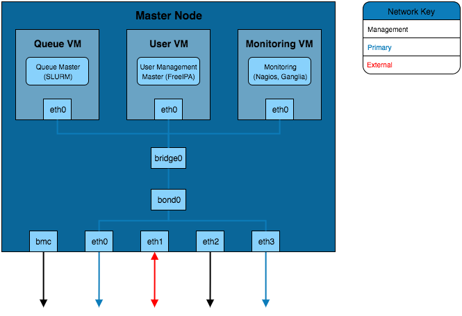 The example configurations here combine elements of the network and hardware guide as well as the different infrastructure solutions from these infrastructure considerations. These focus on the internal configuration of the master node but these examples can be extrapolated for configuring login, storage, compute or any other nodes that are part of the HPC environment.